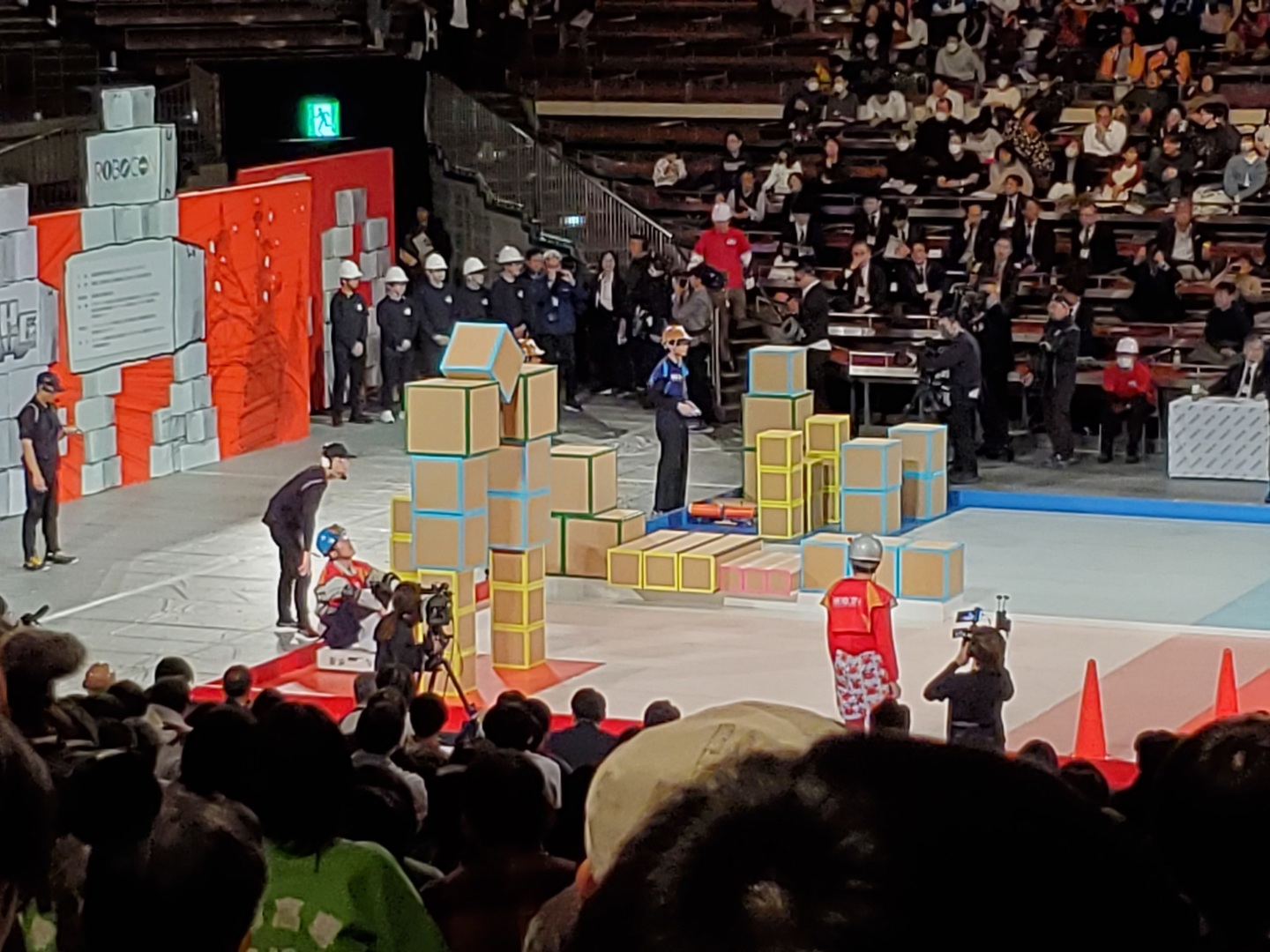 只、出場メンバー全員が3年生でしたので、この経験を活かして来年への期待が高まりました。決勝は旭川高専と熊本高専(熊本キャンパス)で熊本高専はこの大会で最も高く積み上げましたが、積む事よりも回数を多くゲートを通過した旭川高専が490対475で優勝いたしました。