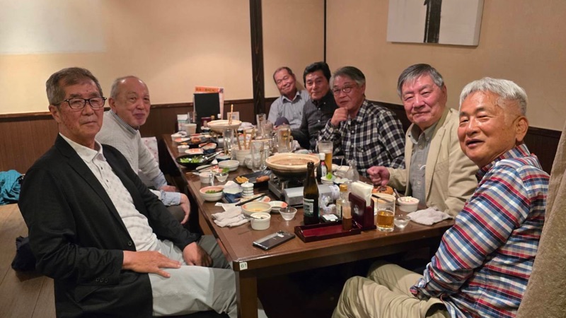 当日は、広島から冨田副会長と清田事務局長にもご臨席いただき、総勢16名で思い出話や近況報告など、校友の親睦を深めました。